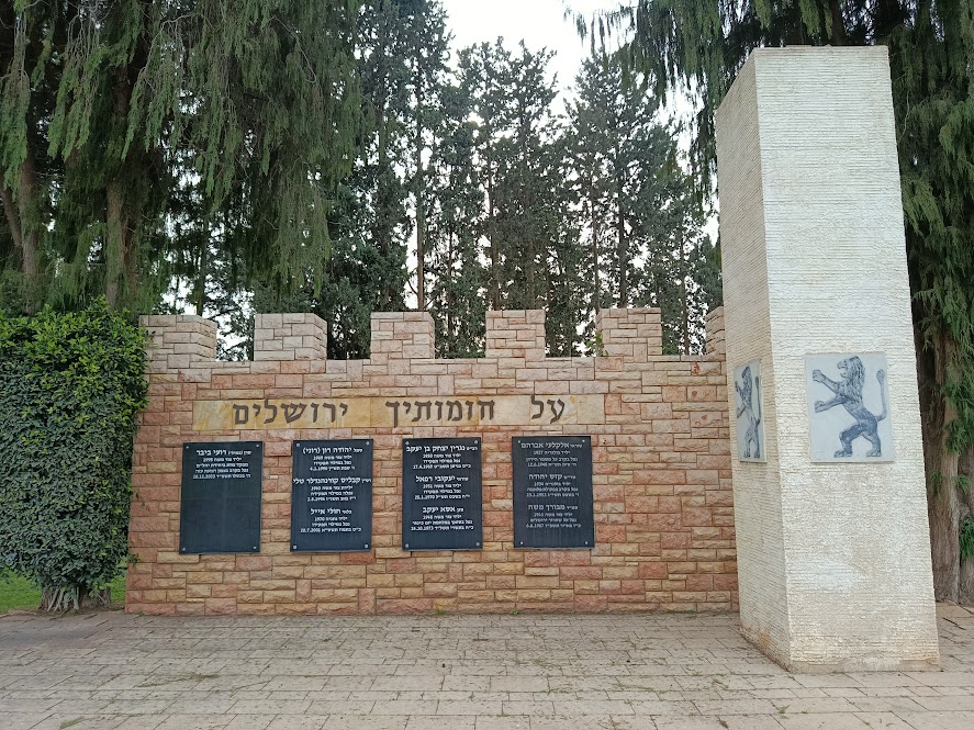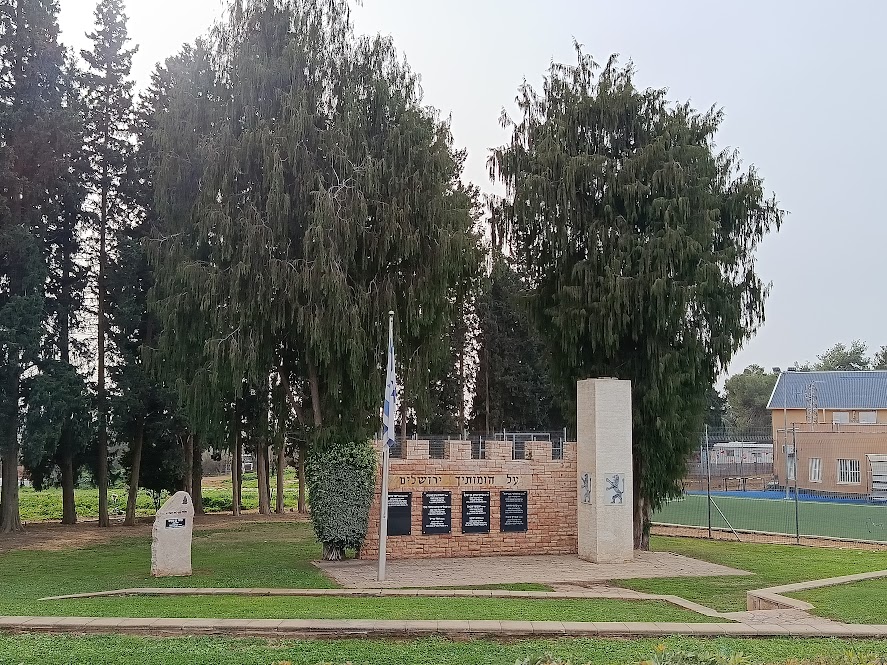 האנדרטה נראית היטב על גבי רחבה מרוצפת, בחורשה בכניסה למושב. היא בנויה כחומת אבן אשר קצה משונן, ומרמזת על חומות העיר העתיקה בירושלים, שכן נבנתה לאחר שחרור העיר במלחמת ששת הימים. על החומה נכתב "על חומותיך ירושלים", ומתחת לכתובת שלושה לוחות ברזל, עליהם רקועים פרטי הנופלים. מימין לחומה עמוד אבן מרובע ועליו ציור אריה מסתער - סמל העיר ירושלים. משמאל לחומה דגל המדינה.