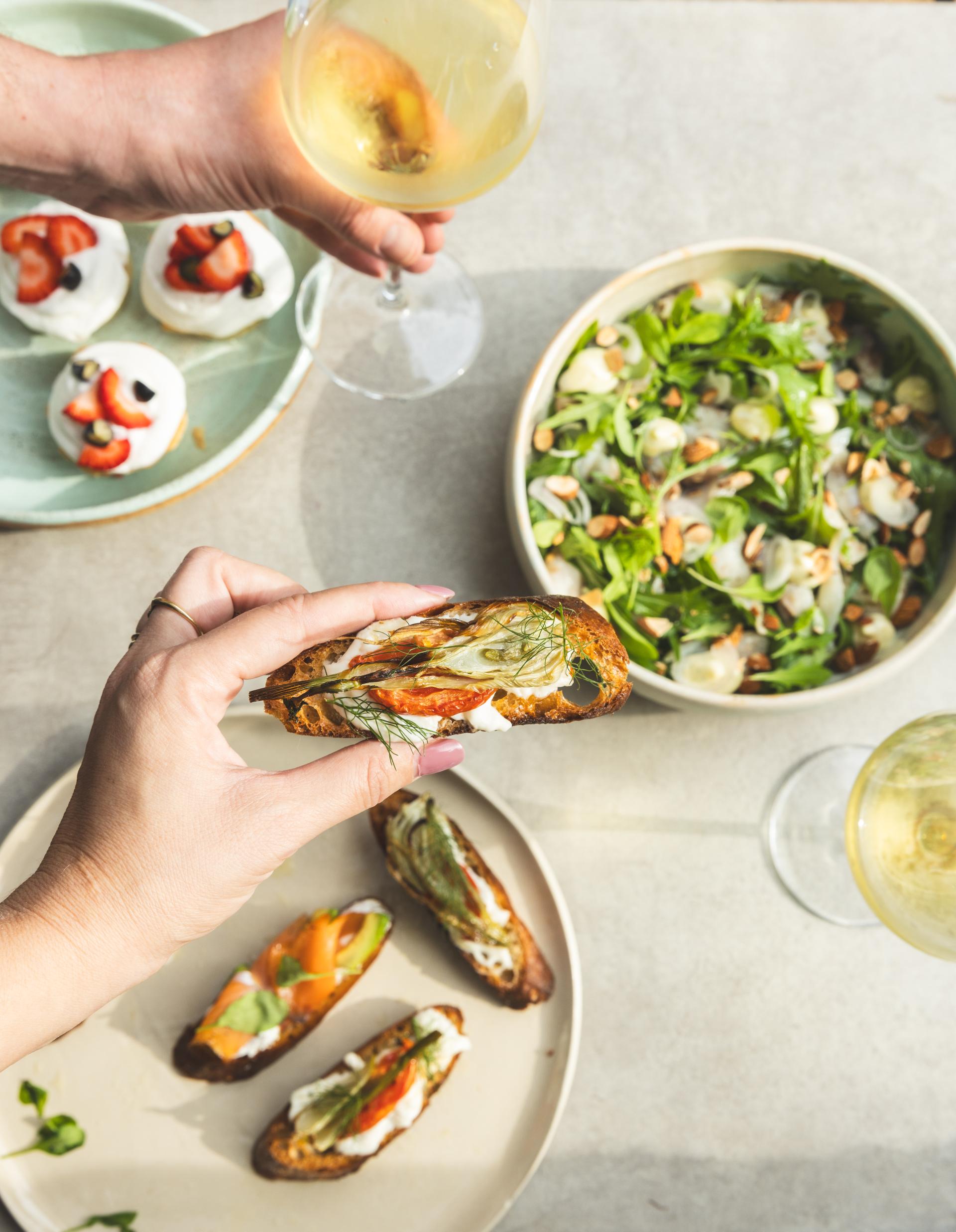 אור ותמר מורבר מארחים סביב השולחן הגדול שבחצרם המטופחת. כל כלי ההגשה עשויים קרמיקה, פרי ידיה של תמר, וניתן לקנותם בתום הארוחה. לאורך כל האירוע מוגשים יין וקוקטיילים בנדיבות.