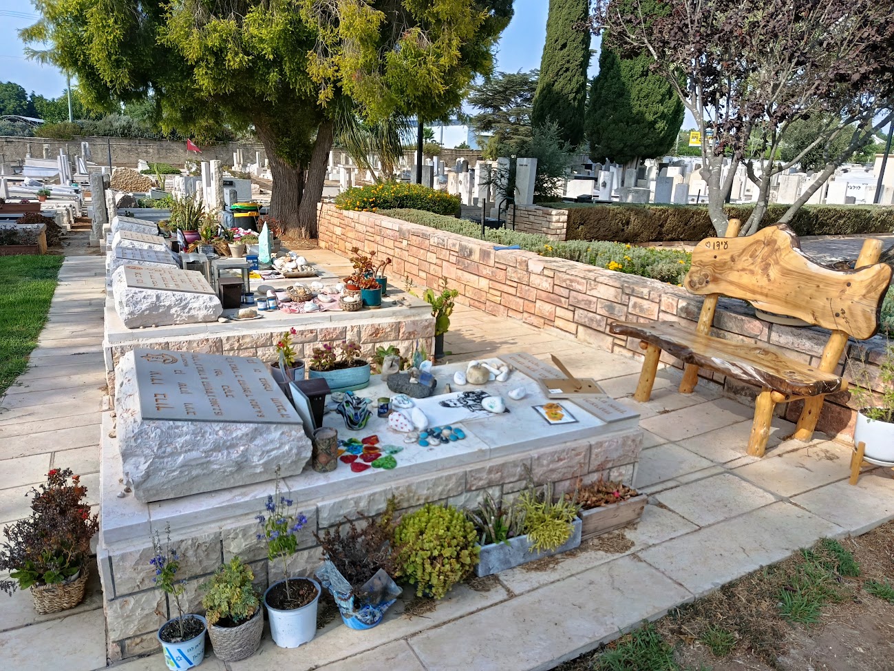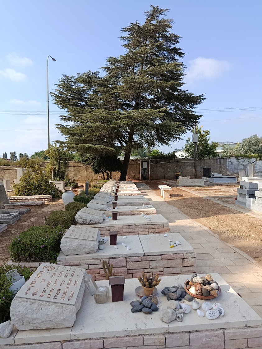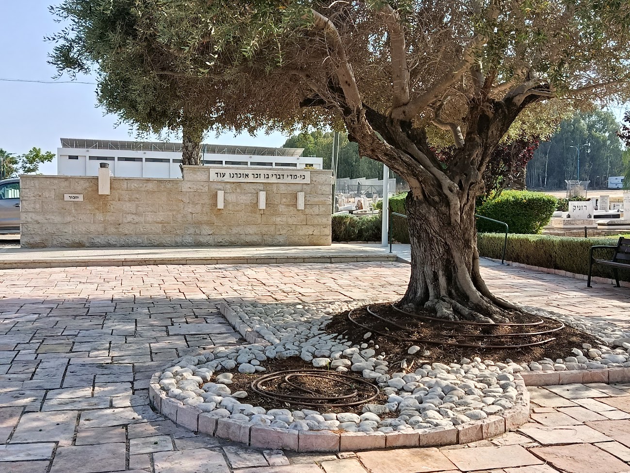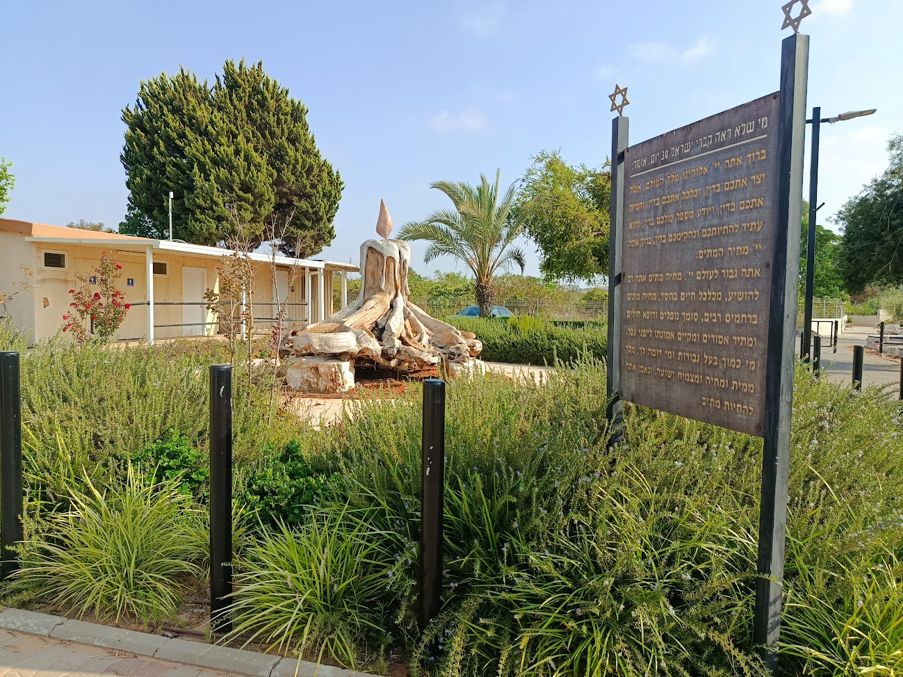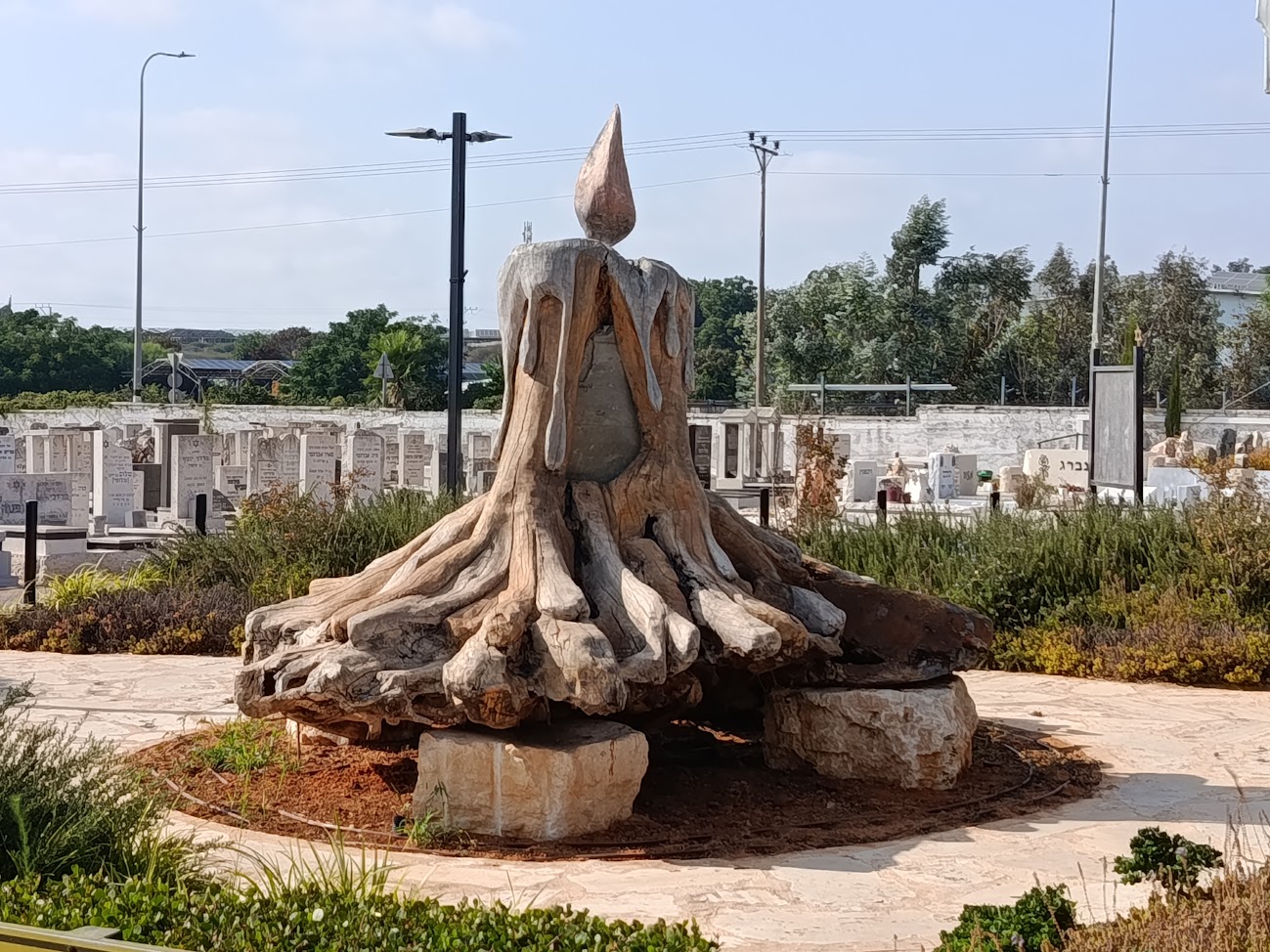 בקצה בית העלמין פסל המעוצב כשילוב בין נר זיכרון לגזע עץ כרות. (עיצוב הפסל - יניב לוי - מנכ״ל החברה קדישא, עבודת הפיסול - נאור הוד.)