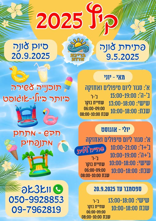הבילוי המושלם לימי הקיץ המהבילים. מצד אחד בריכה עם כל מה שנדרש: מלתחות, שמשיות, כסאות, מזנון, בריכת קטנטנים ועוד, מאידך – חנייה נוחה וחינמית, וכל זאת ללא ההמונים של העיר הגדולה.