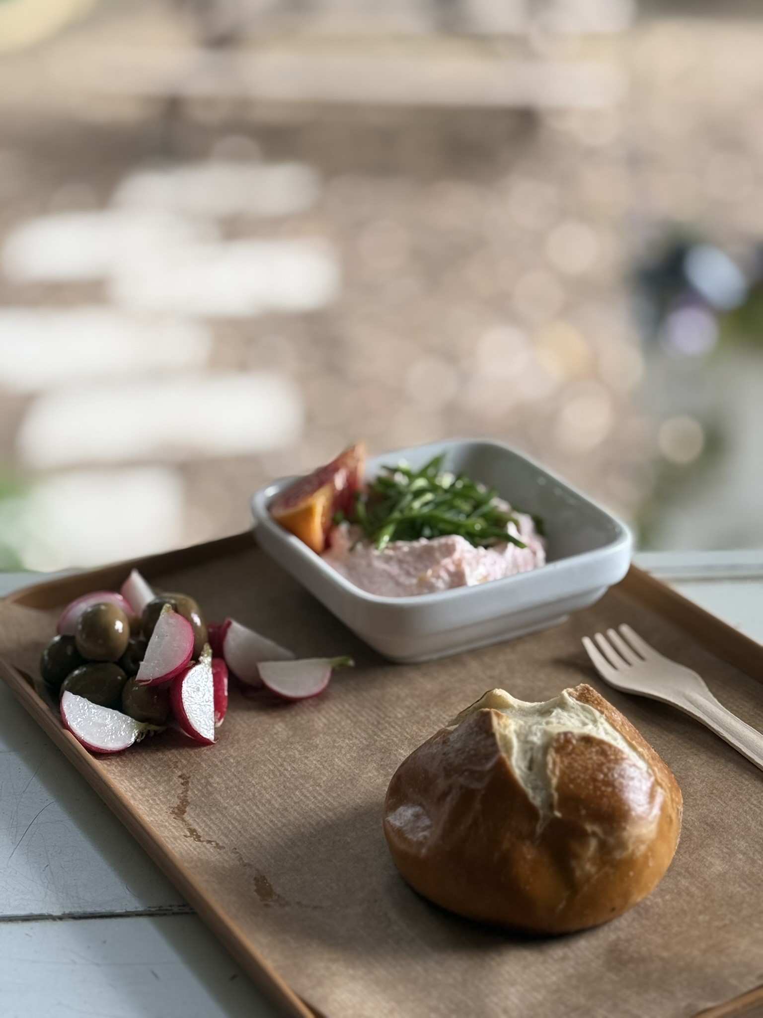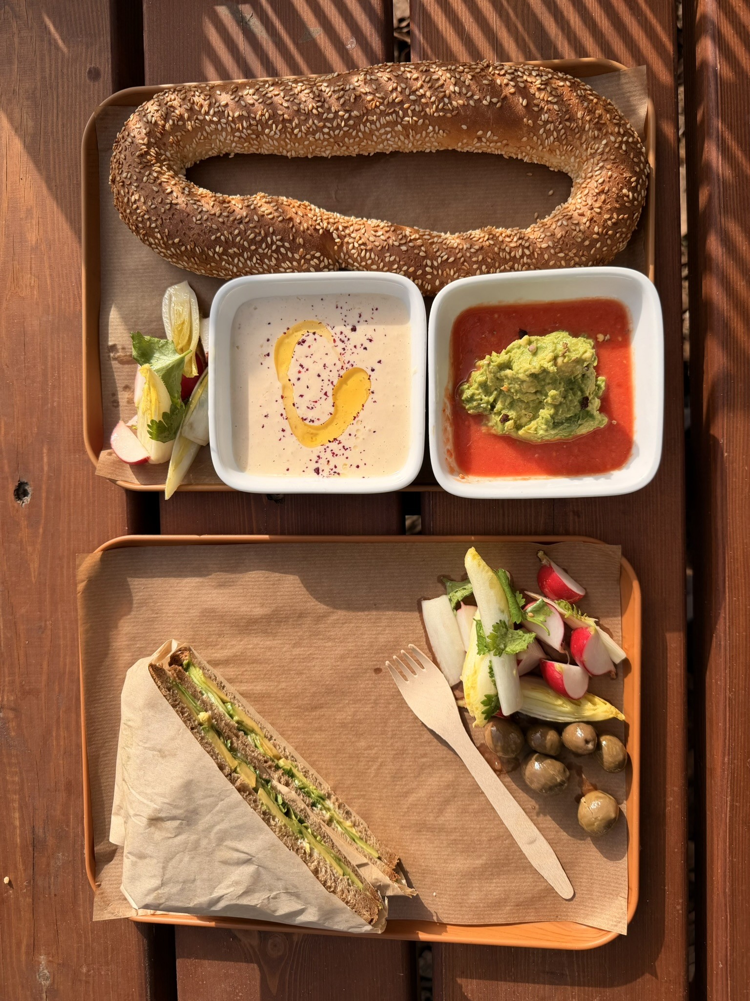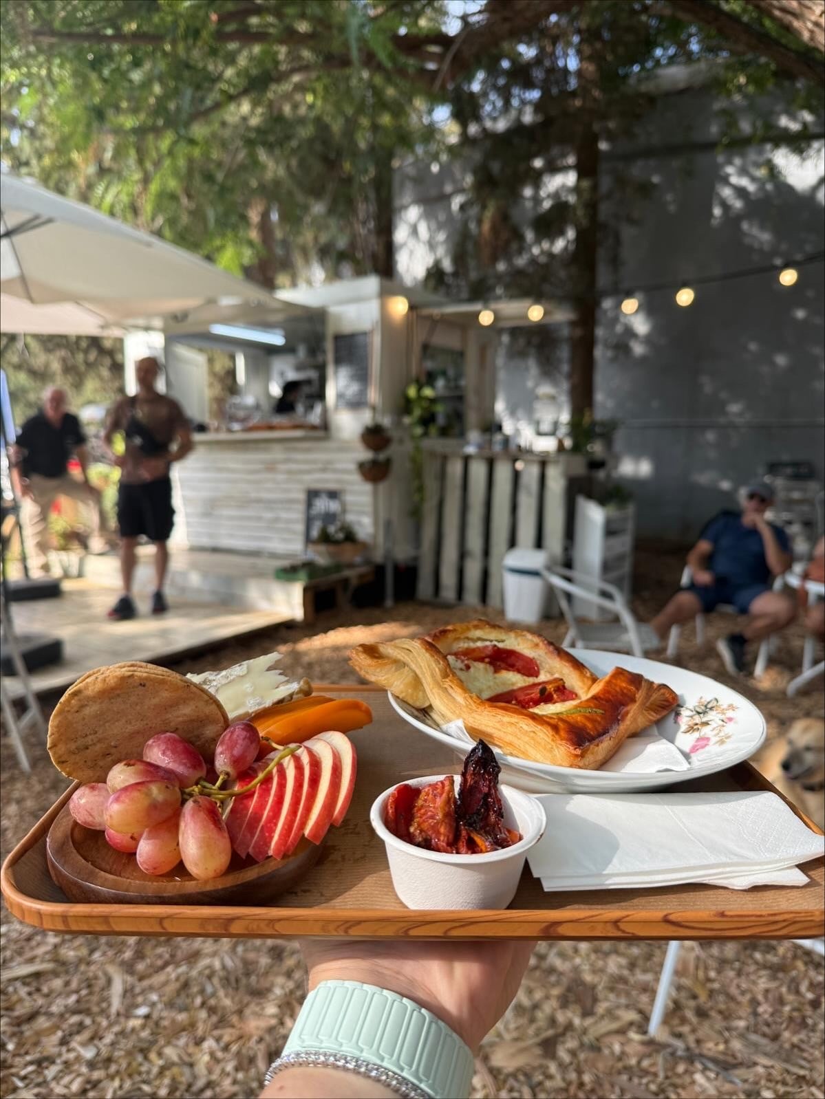 בצל העצים הותיקים תוכלו להנות מקפה איטלקי משובח, מיצים סחוטים, מאפים טריים ומנות עונתיות מתחלפות. בימי שישי חורפיים תזכו למרק עגבניות צלויות.