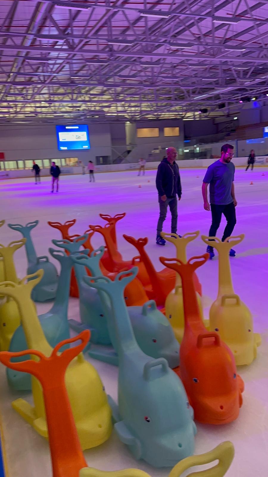 שתי זירות קרח, אחת בגודל סטנדרטי והשנייה בגודל אולימפי. יציעים, חנות ציוד מקצועי, מסעדת פיצה חלבית. למתחילים ישנם "דולפינים" המסייעים בצעדים ראשונים על הקרח.