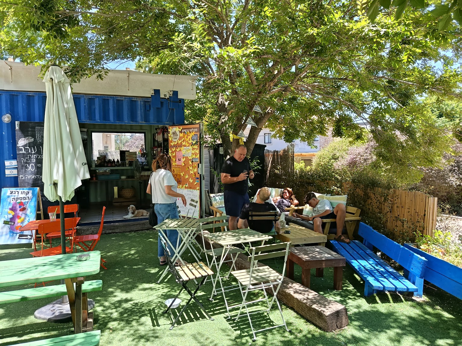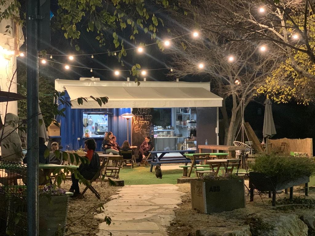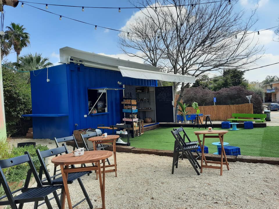 קופסא בחוץ היא שילוב של עגלה ובית קפה, עם מדשאה צמודה וגן שעשועים.