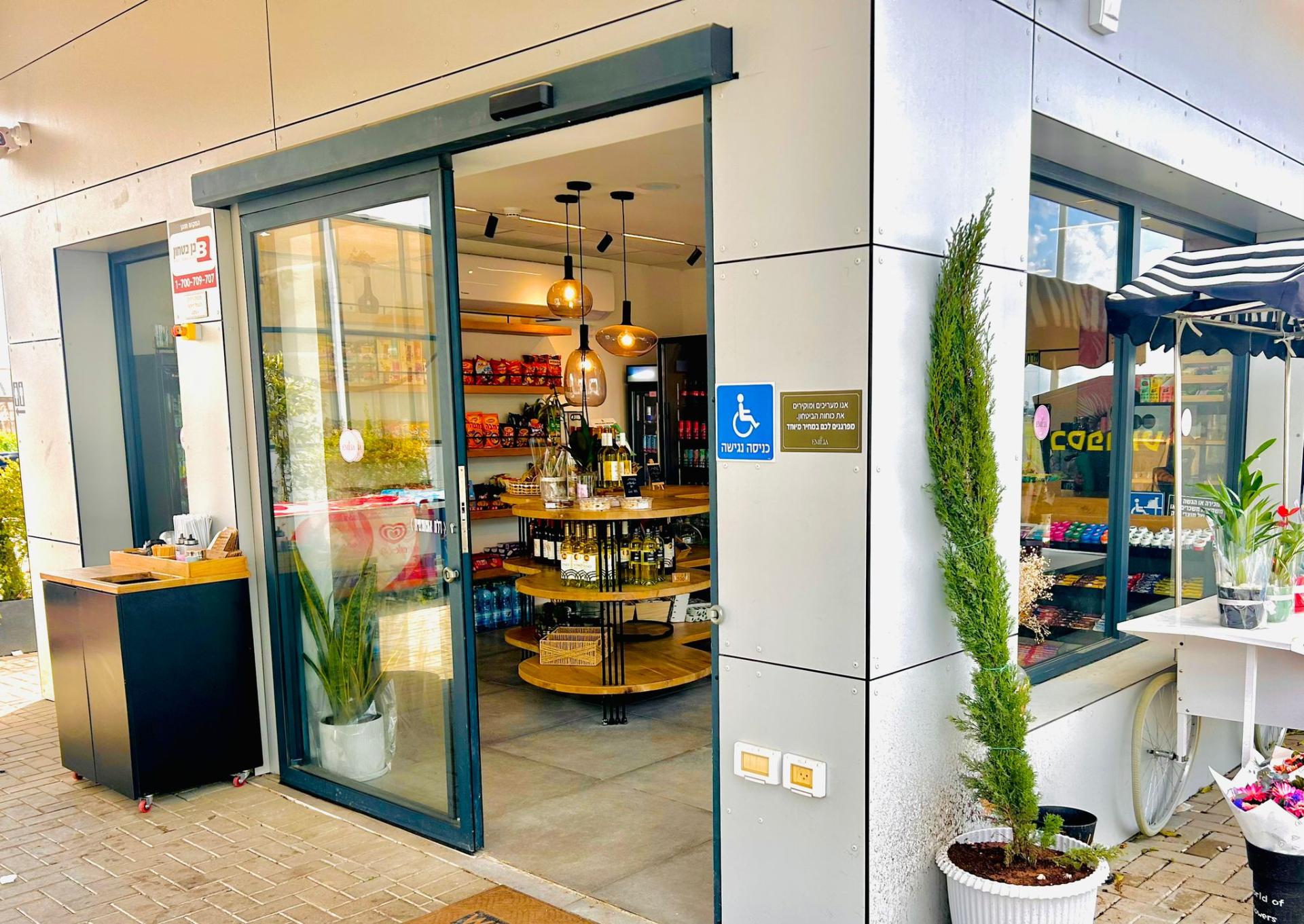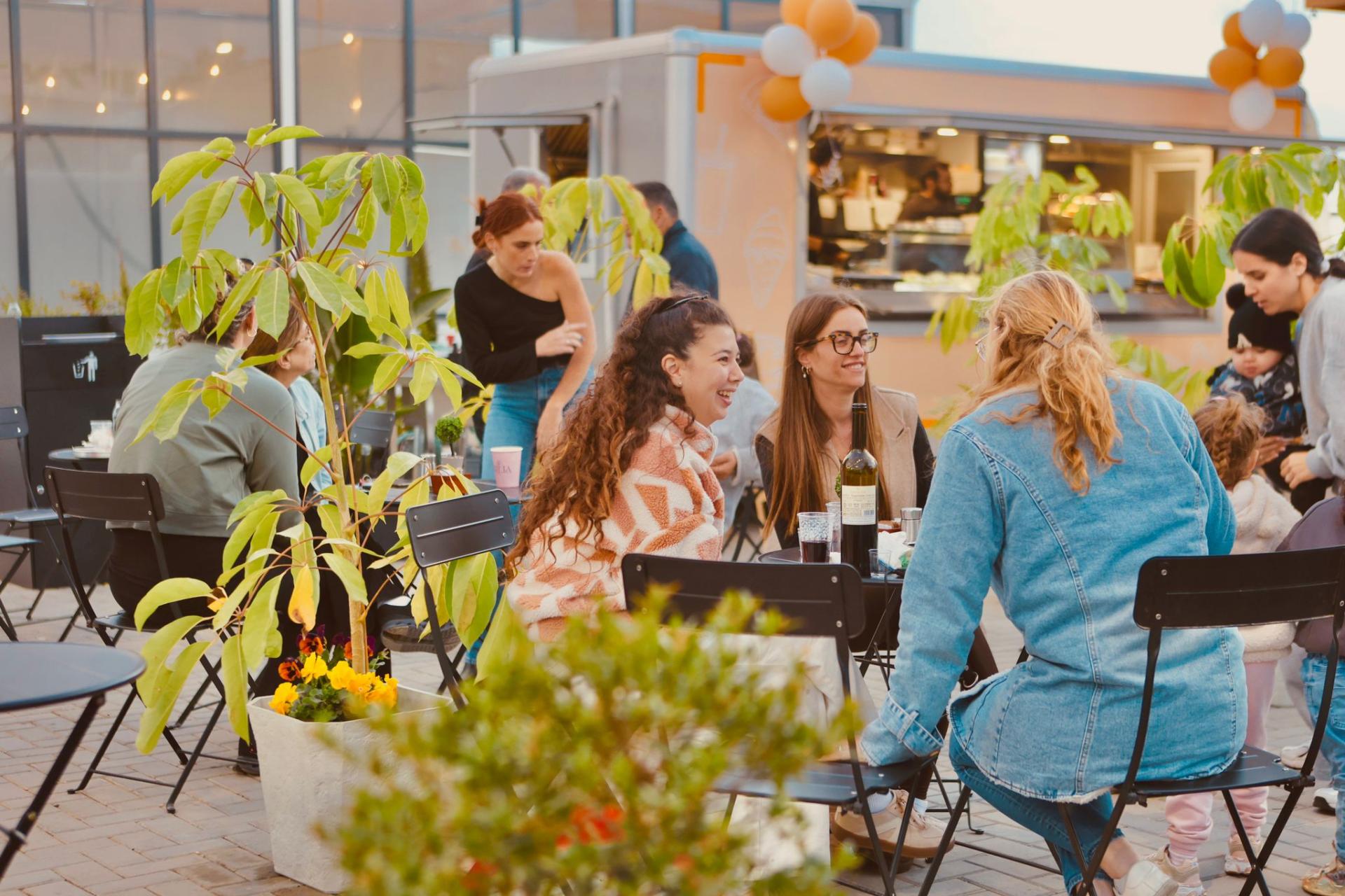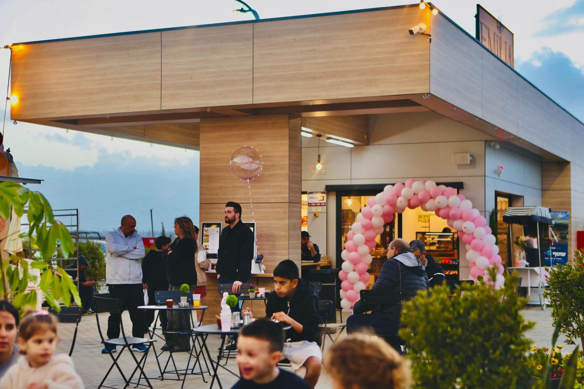 מתחם קולינרי בכניסה לניצני עוז הכולל בית קפה ושתי עגלות מזון, האחת חלבית והשנייה בשרית.