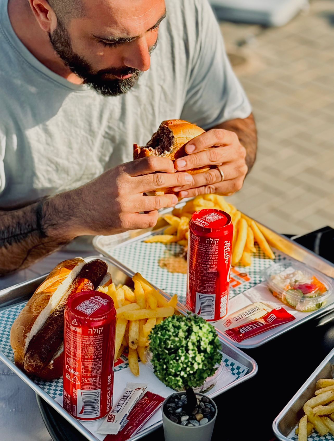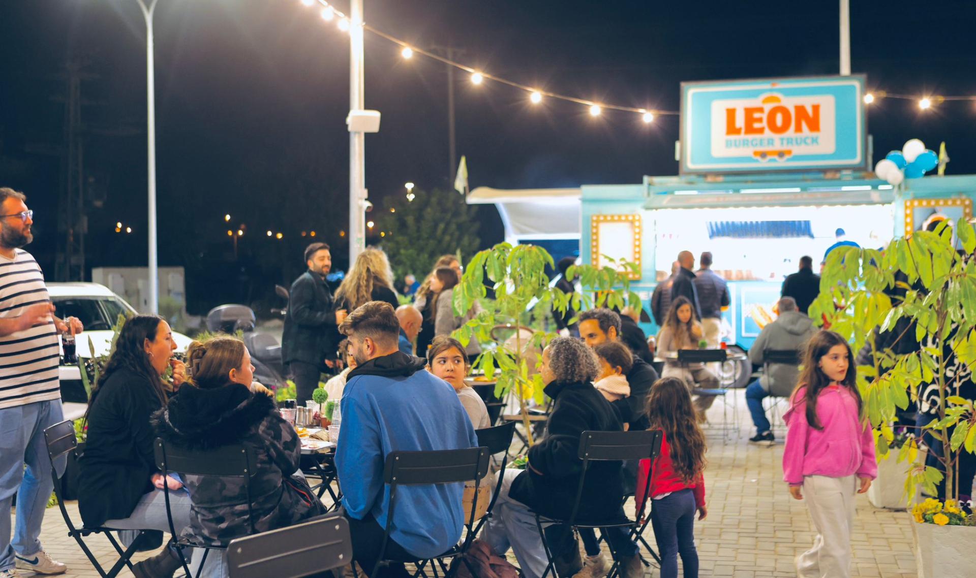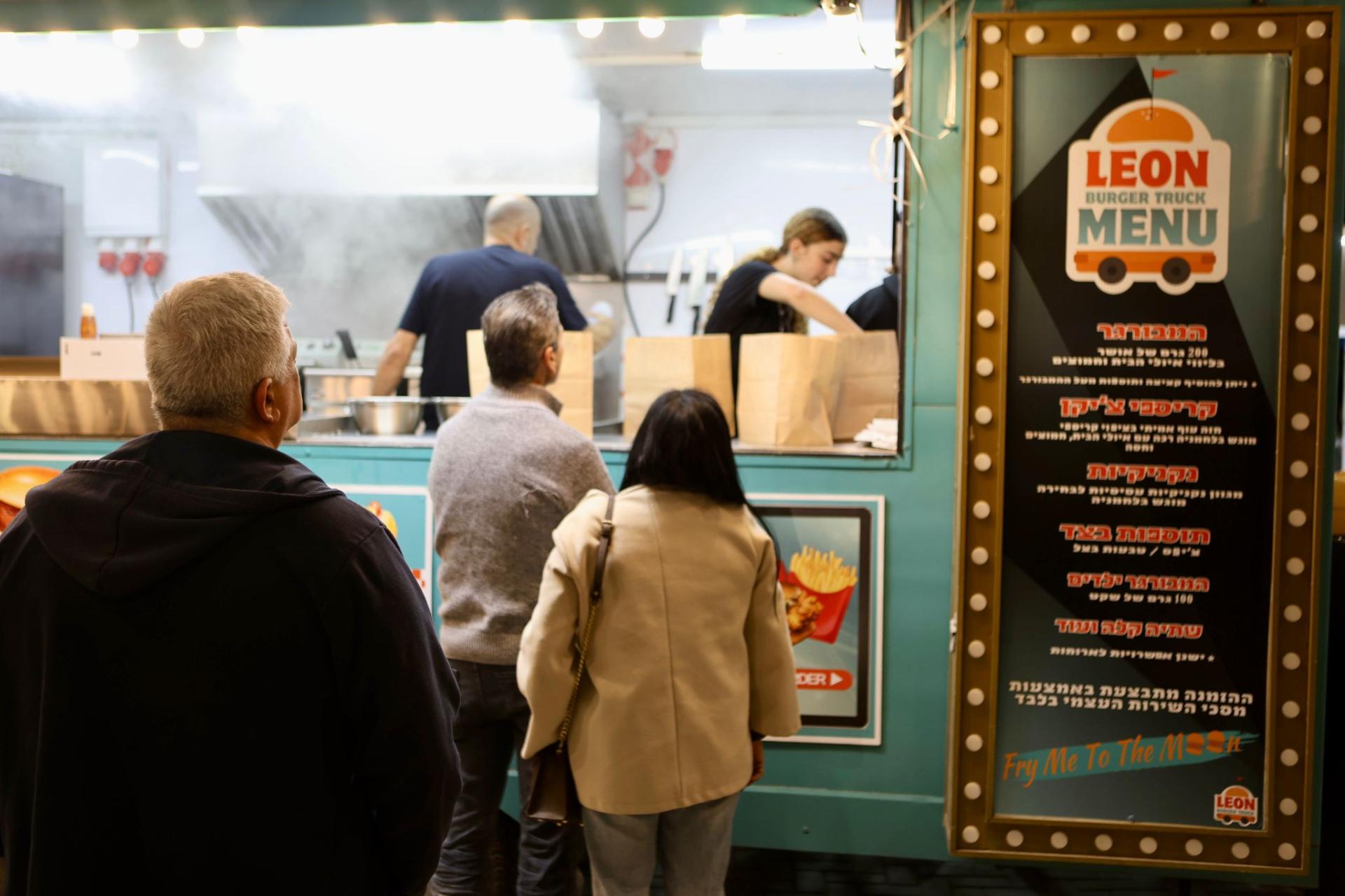 לאון- פודטראק בשרי שמציע המבורגר, קריספי צ׳יקן, נקניקייה בלחמניה וצ׳יפס.
