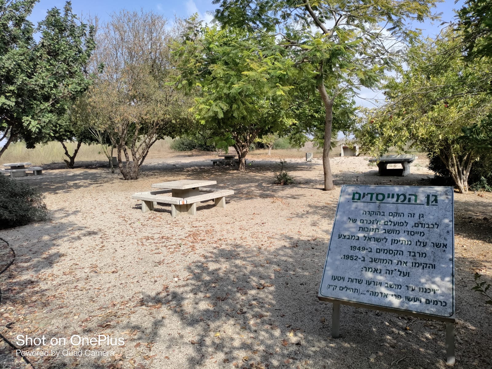בבואנו אל התל נחלוף על פני מדשאה, אזור פיקניק עם ברז מים, ומקבץ מכשירי כושר. אזור הפיקניק הוא "גן המייסדים" של מושב תנובות, והוקם לכבודם של מקימי המושב אשר עלו לארץ מתימן במבצע "מרבד הקסמים"  ב-1949.