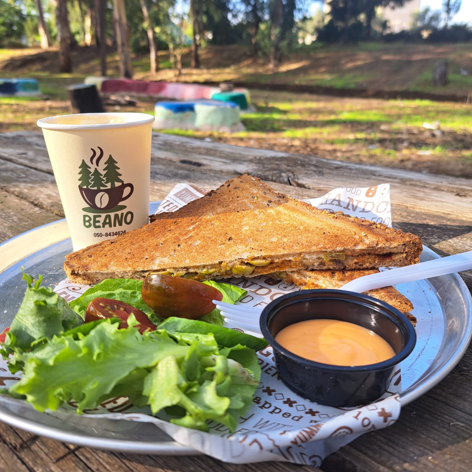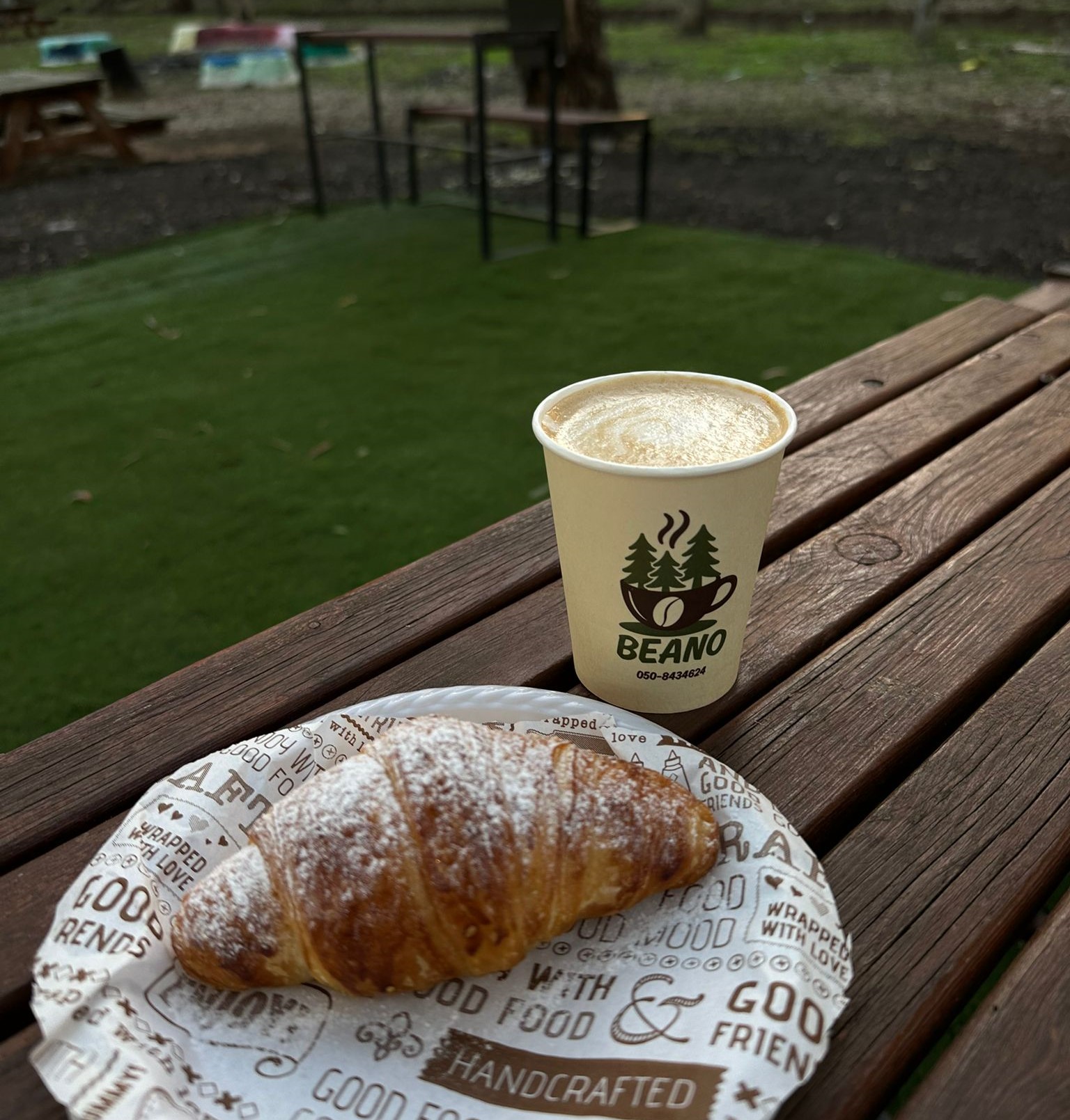 בחורשה ירוקה תמצאו כסאות וספסלים תחת צל עצים, סביבה טבעית נעימה ואווירה שקטה. לצד קפה ומאפים תמצאו בפריט גם פיצות, ג'חנון, וטוסטים מושקעים.