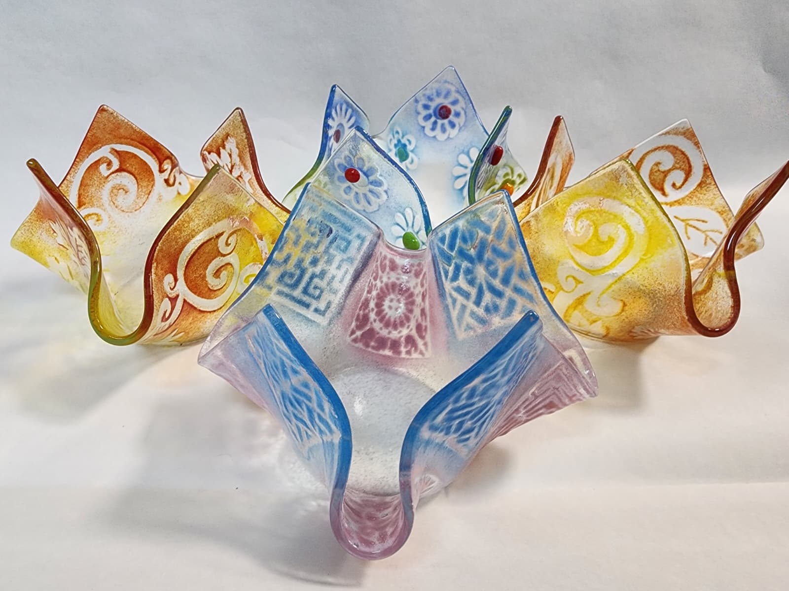 בויטראז' ניתן ליצור חלונות,אהילים,קופסאות ועוד. בעבודת הפסיפס המשתתפים שוברים את הפיסות לשברים קטנים ומהם יוצרים תמונה חדשה. כך ניתן לעטר שולחנות, שלטים,תמונות ופסלים תלת ממדיים. בפיוזינג ניתן להכין תמונות פסלים וכלים שימושיים.